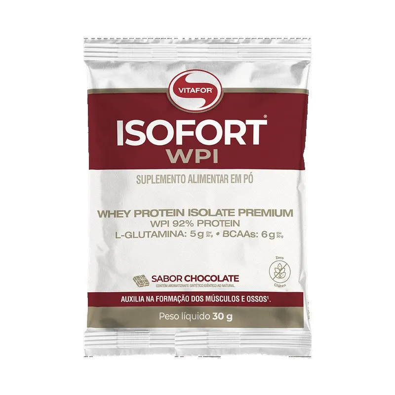 Isofort 30g - sachê - chocolate - vitafor é rico em proteínas isoladas, com concentração de aminoácidos essenciais, fundamental para o crescimento e manutenção da massa muscular, é ideal para ser consumido a qualquer hora do dia, oferecendo uma solução prática, saborosa e eficiente para quem deseja melhorar seu desempenho físico e nutrir o corpo com ingredientes de alta qualidade.
